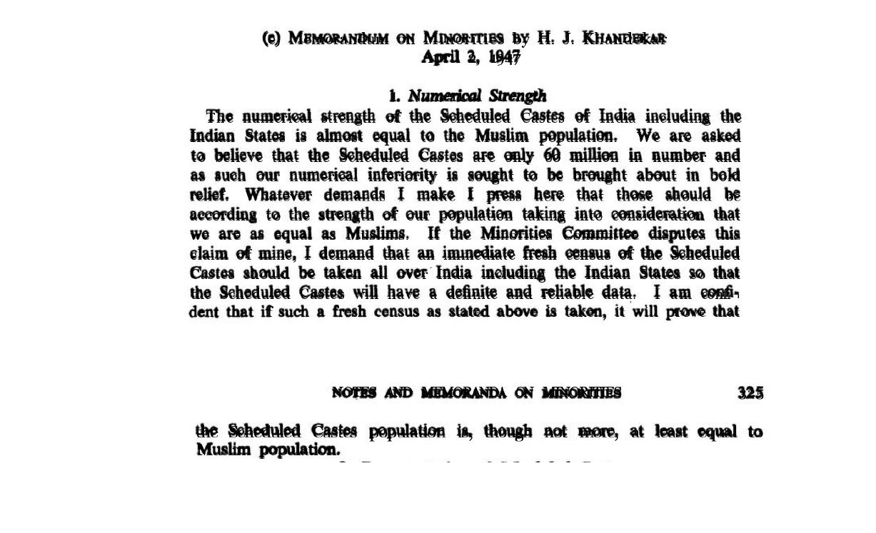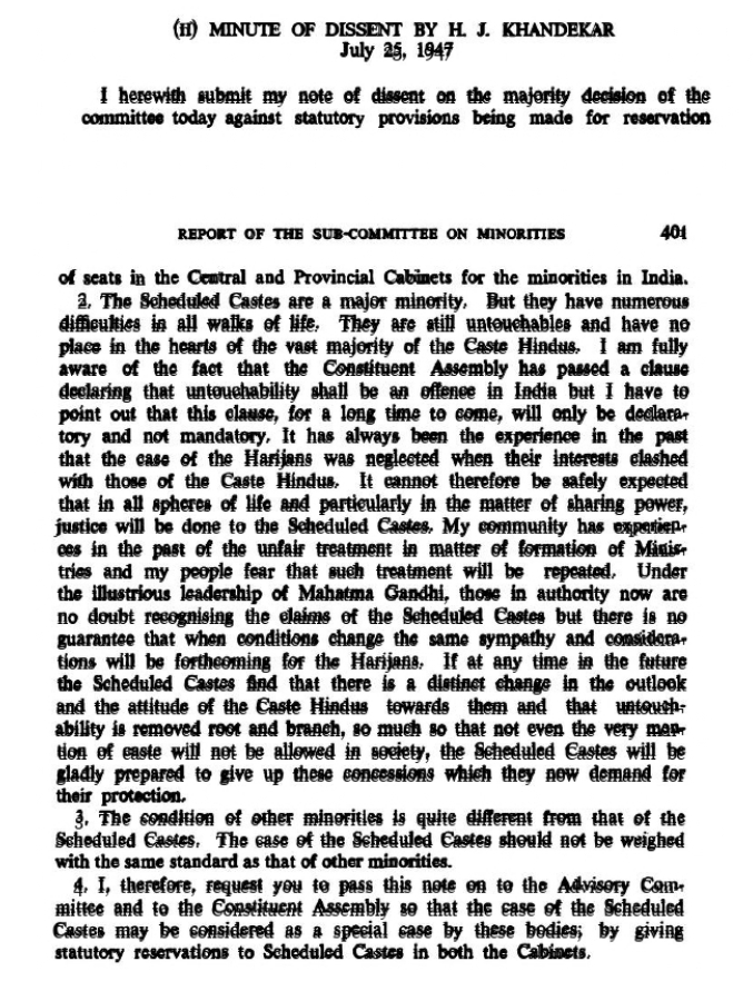 H.J. Khandekar pens a “Memorandum on Minorities” on April 2nd, 1947, in which he is quite scathing in his criticism of Article 17 as it was then formulated. He alleges that Dalit citizens are being ignored because of the perception that they are less populous and powerful.